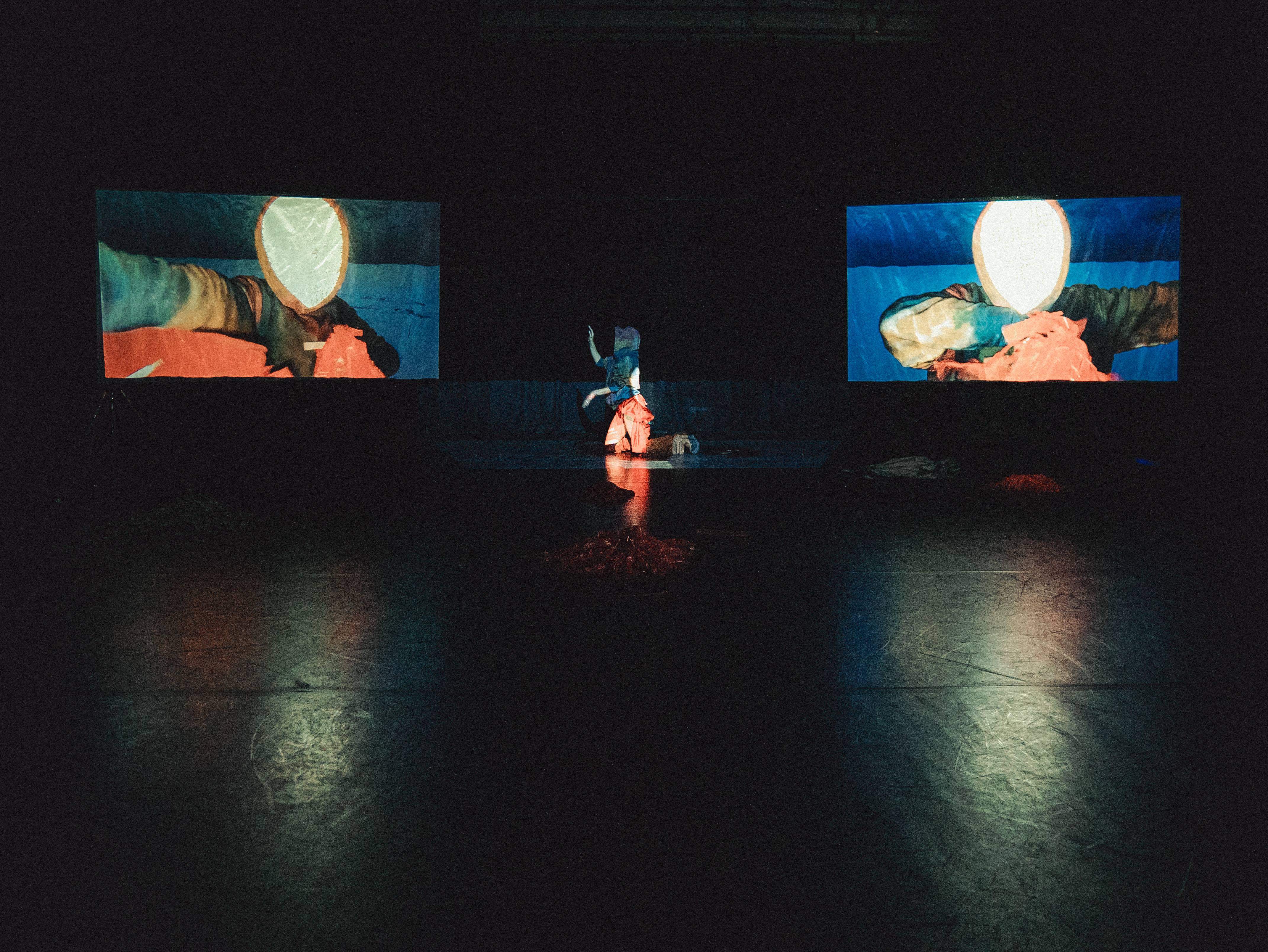 Inspired by Rita Lucarelli’s notion of ‘doorscapes’—a term used to describe the numerous thresholds and their guardians depicted in Ancient Egyptian funerary texts— Noha’s AfterMyth offers a series of moving images and texts performed through the cinematic trope of a pop-horror dream sequence. It explores shared notions of loss and transformation, and searches for what comes to life in the gap between the frames. A previous iteration of this performance took place as a work in progress at Centrale Fies in Trento in July 2025. You can read more about Noha’s performance at Alkantara Festival here.